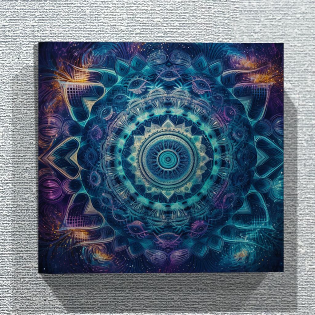 この曼荼羅はイルカの好奇心や遊び心、そして本質との調和のエネルギーを感じて制作しました。