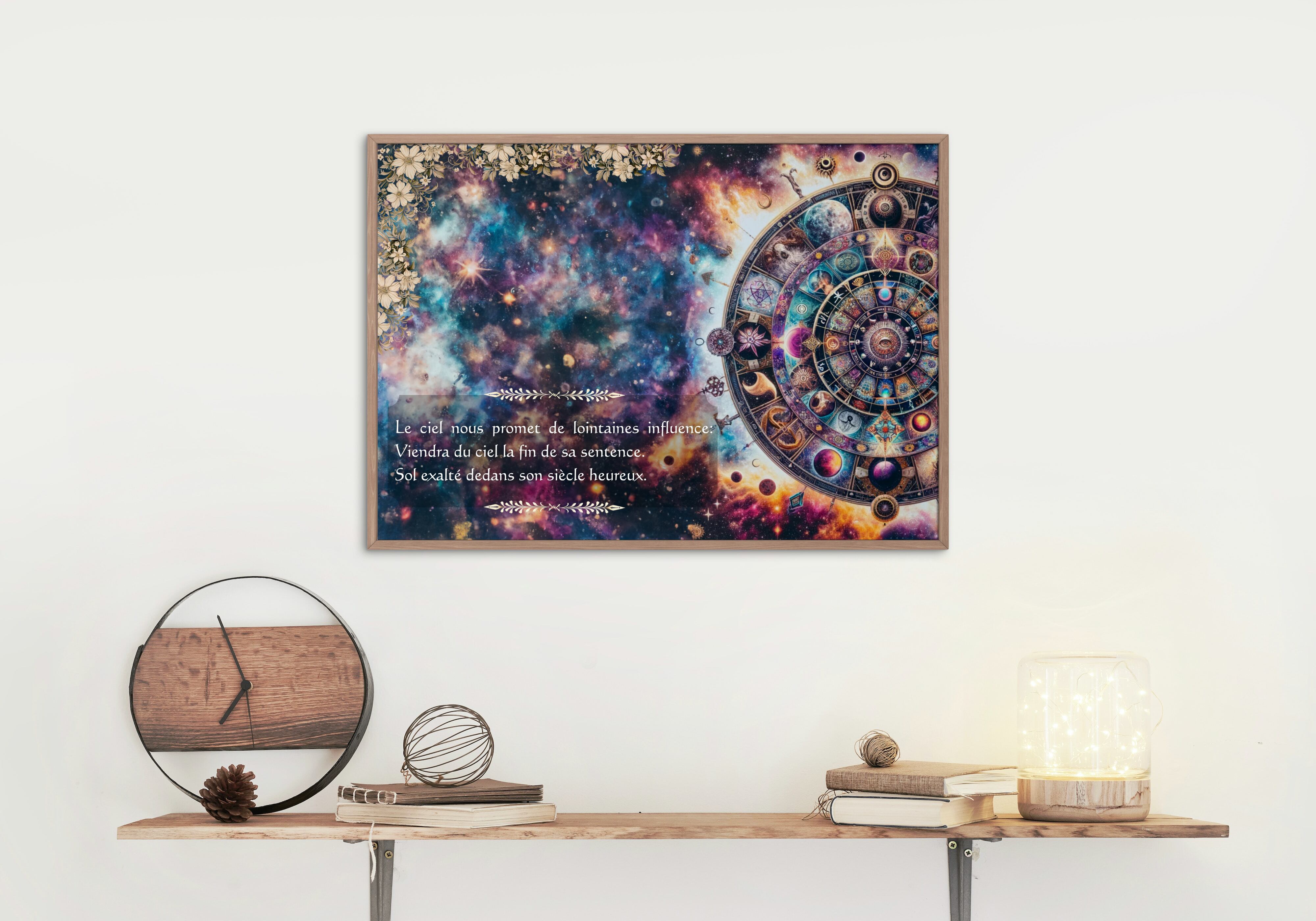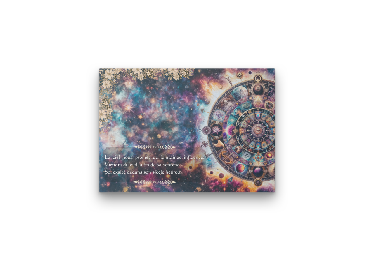ノストラダムスの神秘的な詩の一節をフィーチャーしたデジタルアートプリントです。