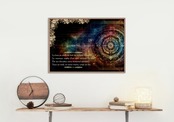 アカシックレコードをモチーフにしたマンダラと宇宙的な背景にノストラダムスの詩を掲載しているデザインです。